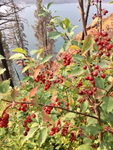 Along the way, we enjoyed nibbling on the thimbleberries (similar to wild raspberries], choke cherries (smoother skin, not quite as sweet, pit inside) and Saskatoon serviceberries (similar to blueberries with a bit of a nutty, almond flavor).