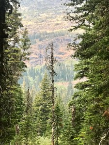 We were able to see but one active glacier – Salamander – and that was only after taking a boat across two lakes and then hiking a mile and a half. We couldn’t see the Jackson or Grinnell glaciers from any of the viewpoints because of the smothering smoke. All our photos are clouded and dulled.