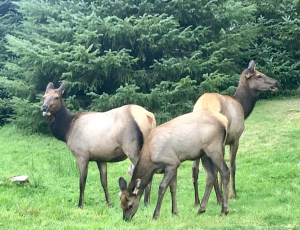 You already saw in the photo leading this post of the three elk who greeted us at our Fort Stevens campground one afternoon. They grazed the area for a good hour-plus, completely unruffled by gawking campers with cameras or the occasional car cruising for a campsite.