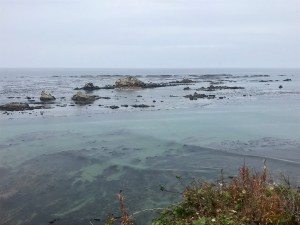 We saw all four from our vantage point at Simpson’s Reef. So did the couple in the center of the next photo. They communed nearer to the seals and sea lions after walking down the half-mile trail to the water’s edge when the tide was out.