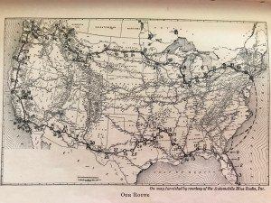 I figured Fred and Mary were in their 40s or 50s at the time of their adventure, a bit younger, ahem, than Georges and I are for ours. I deduced this based on the fact that he’d been granted an extended leave from “his college work,” that they’d had “no long rest since a trip to Europe twelve years before,” and that they had two grown daughters. The elder daughter was working in Pasadena and joined them for part of the trip on the West coast; the younger was away at school and would join them for the final summer portion of the journey across the northern tier.