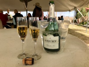 We’d just finished a hearty lunch and decided to wait out the crowd over a Gruet Blanc de Noirs sparkling wine, long one of our favorites, made in Albuquerque by a French wine maker from grapes grown near the Elephant Butte reservoir we’d camped at the night before and at two other New Mexican vineyards.